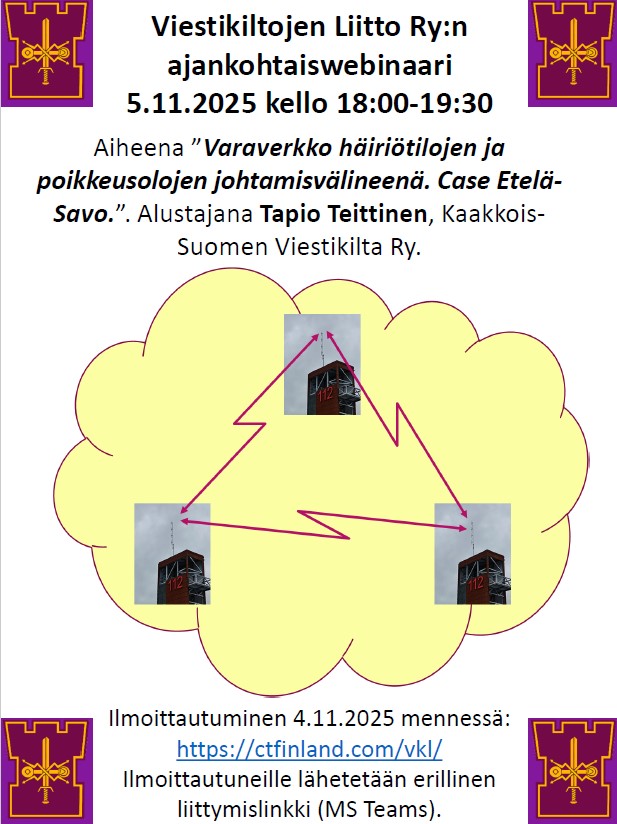 Ilmoittautuminen 4.11.2025 mennessä: https://ctfinland.com/vkl/